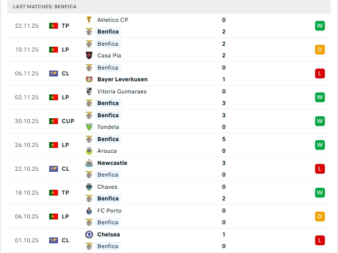 - Phong độ Benfica