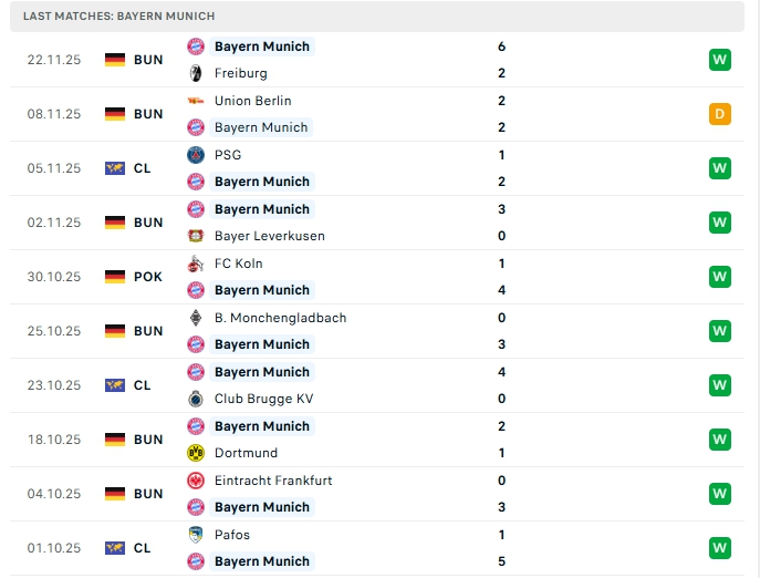 Bayern Munich là đại diện đến từ Đức, sau 4 trận đấu hàng công của họ mang về 14 bàn thắng cùng hàng thủ nhận 3 bàn thua, cả 4 trận đấu đó của Hùm Xám đều khép lại trên 3 bàn thắng, khi thi đấu xa nhà ở cả 5 trận gần nhất của Bayern cũng khép lại trên 3 lần lưới rung.