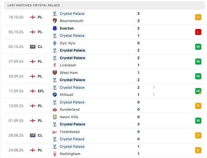 - Phong độ Crystal Palace