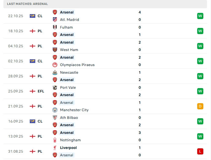 Arsenal sau 8 trận đấu họ mang về 6 chiến thắng, 1 hòa cùng 1 thất bại, có được 19 điểm và đang dẫn đầu trên BXH, Pháo thủ vừa có chiến thắng ấn tượng trước Atletico Madrid ở đấu trường Champions League, ở vòng đấu gần nhất sân chơi Ngoại Hạng Anh, Pháo thủ cũng có được chiến thắng 1-0 trước Fulham, phong độ thời gian qua của Arsenal là hết sức ấn tượng, họ bất bại ở 9 trận gần nhất với 8 chiến thắng cùng 1 hòa.