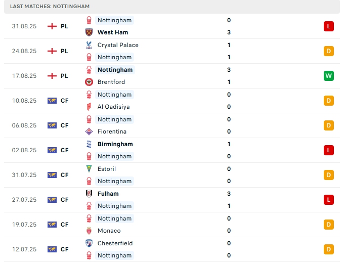 - Phong độ Nottingham Forest