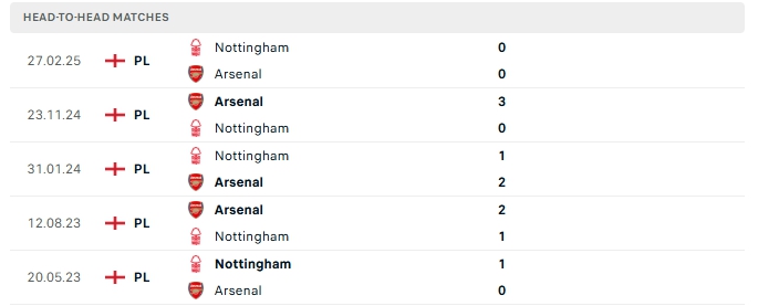 Những màn đụng độ giữa Arsenal và Nottingham Forest thường diễn ra hấp dẫn với nhiều bàn thắng được tạo ra, cụ thể ở 3/5 lần gặp nhau gần nhất và cả 5 lần đón tiếp Nottingham Forest trên sân của Arsenal khép lại vượt mốc trên 3 bàn.