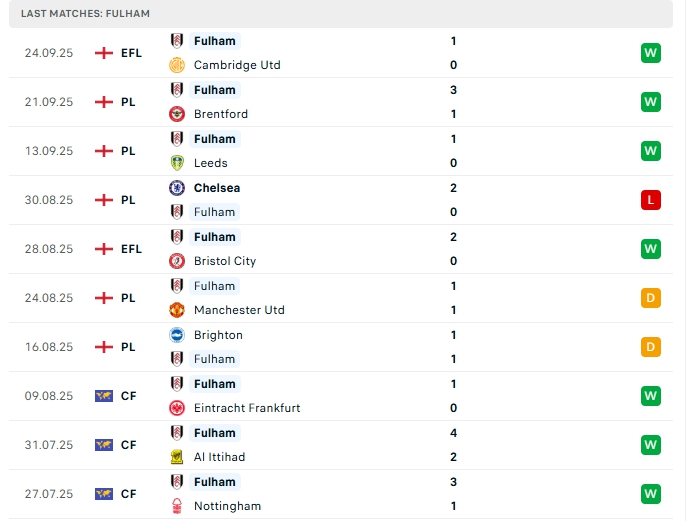 - Phong độ Fulham