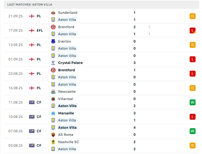 - Phong độ Aston Villa