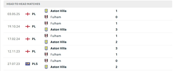Lịch sử đối đầu của Aston Villa vs Fulham