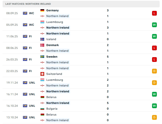 Bắc Ireland sau 2 lượt trận họ mang về 1 chiến thắng cùng 1 thất bại có được 3 điểm và đang xếp thứ 2 ở bảng A, bằng điểm với đối thủ trong trận đấu này là Đức, ở ngày ra quân Bắc Ireland có chiến thắng 3-1 trước Luxembourg, nhưng sau đó là thất bại 1-3 trước Đức, phong độ thời gian qua của Bắc Ireland không quá tốt, họ thua 3 và chỉ thắng 2 ở 5 trận gần nhất, trên sân nhà Bắc Ireland thắng 4 và hòa 1 ở 5 trận gần nhất.