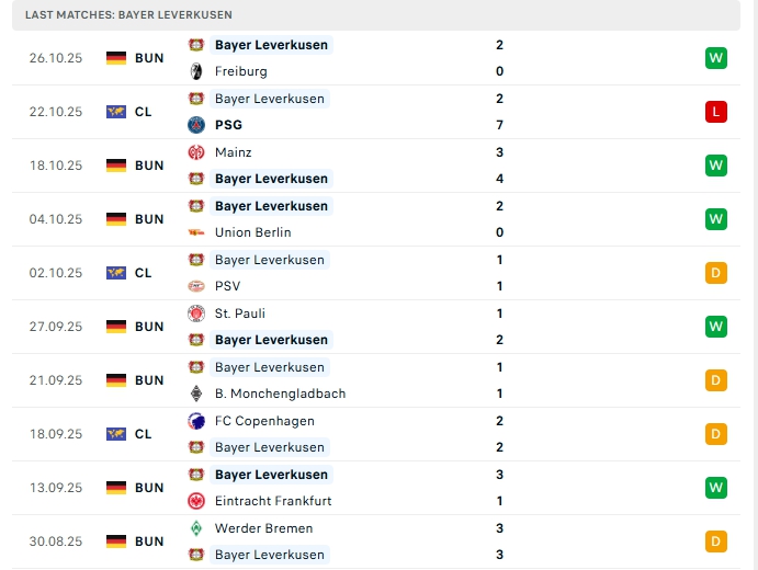 - Phong độ Bayer Leverkusen