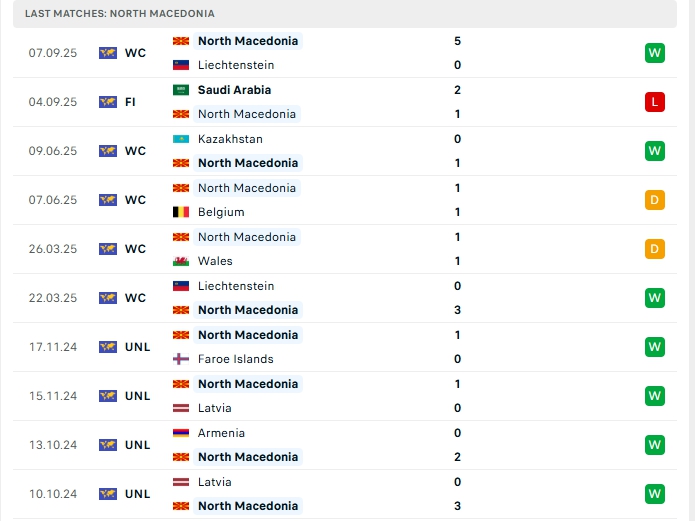 North Macedonia sau 5 trận đấu, hàng công của đội bóng này mang về 11 bàn thắng cùng hàng thủ nhận 2 bàn thua nào, 2 trận vừa qua của North Macedonia khép lại từ 3 bàn trở lên, khi thi đấu xa nhà ở 3/5 trận gần nhất cũng có kết quả tương tự, hàng công đang chơi tốt giúp North Macedonia bay cao trên BXH.