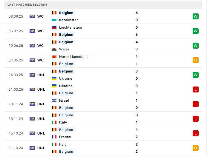Bỉ sau 4 lượt trận họ mang về 3 chiến thắng cùng 1 hòa, có được 10 điểm và đang xếp vị trí thứ 2 ở bảng J, kém đội đầu bảng là North Macedonia khoảng cách 1 điểm nhưng đang thi đấu ít hơn 1 trận, phong độ thời gian qua của Bỉ là khá tốt, họ thắng 4, hòa 1 ở 5 trận gần nhất, trên sân nhà Bỉ cũng đang chơi tốt 3 chiến thắng liên tiếp vừa qua.