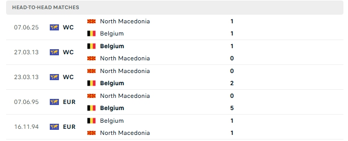 Lịch sử đối đầu của Bỉ vs North Macedonia