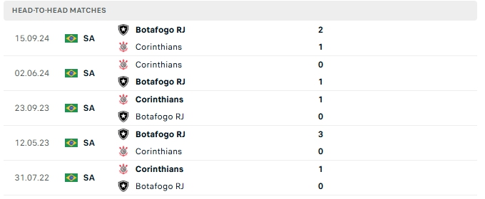 Lịch sử đối đầu của Botafogo vs Corinthians