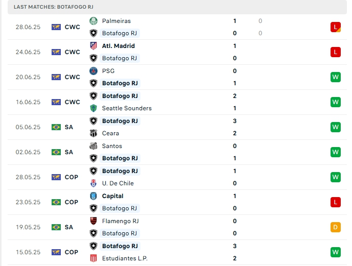 Botafogo sau 11 trận đấu họ mang về 14 bàn thắng cùng với hàng thủ cực kỳ chắc chắn khi chỉ nhận 7 bàn thua, lối chơi của Botafogo thiên về phòng ngự nên hiệu suất ghi bàn của hàng công là không tốt, 3/5 trận gần nhất của họ khép lại 90 phút không quá 2 bàn và cả 5  trận xa nhà vừa qua cũng khép lại với kết quả tương tự.