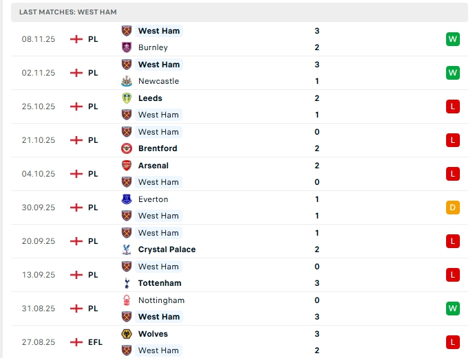 West Ham Utd ở 11 lượt trận đội bóng này có được 13 bàn thắng cùng hàng thủ nhận 23 bàn thua, 3/5 trận gần nhất của West Ham Utd khép lại trên 3 bàn thắng, khi thi đấu xa nhà ở 3/5 trận vừa qua khép lại vượt mốc 3 bàn, hàng thủ đang chơi tệ khiến West Ham Utd đang gặp nhiều khó khăn ở mùa giải năm nay.