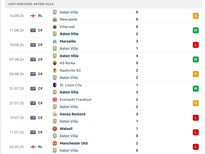 - Phong độ Aston Villa