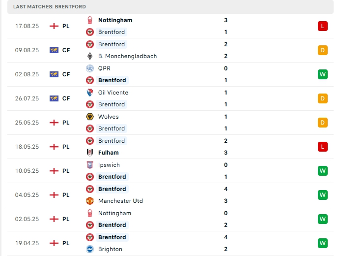 - Phong độ Brentford