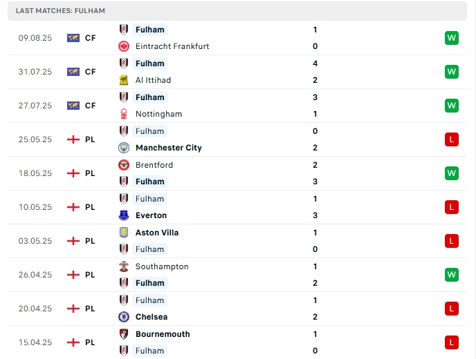 Bên kia sân, Fulham chỉ có được 3 trận giao hữu trước thềm mùa giải mới, nhưng kết quả mà họ thu về rất ấn tượng với 3 chiến thắng, dù vậy những đối thủ mà họ đánh bại không được đánh giá quá cao, khi thi đấu xa nhà Fulham chơi không tốt khi thua 3 ở 5 trận gần nhất, Fulham được dự báo sẻ gặp khó ở trận mở màn mùa giải mới.