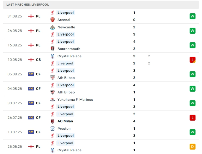 Liverpool sau 3 lượt trận đội bóng này có cho mình 8 bàn thắng cùng hàng thủ nhận 4 bàn thua, hàng công chơi tốt và là hàng mạnh nhất sau 3 lượt trận đầu tiên, 2/3 trận vừa qua của Liverpool khép lại từ 3 bàn trở lên, khi thi đấu xa nhà ở cả 5 trận vừa qua đều vượt mốc trên 3 bàn.