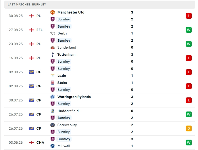 Burnley sau 3 lượt trận đầu tiên, hàng công của đội bóng này mang về 4 bàn thắng cùng hàng thủ chơi tệ khi nhận đến 6 bàn thua, 2/3 trận đấu đó của Burnley khép lại từ 3 bàn thắng trở lên, trên sân nhà của mình Burnley ở 3/5 trận vừa qua cũng vượt mốc trên 3 bàn, trong đó hàng thủ nhận 4 bàn thua.