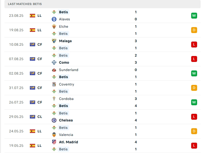 Bên kia sân, Betis đang có khởi đầu ấn tượng, sau 2 vòng đấu họ mang về 4 điểm, ở ngày ra quân Betis có kết quả hòa trước Elche và sau đó là chiến thắng tối thiểu 1-0 trước Alaves, 4 điểm có được giúp Betis có được vị trí thứ 2 trên BXH, phong độ thời gian qua của Betis là khá tốt, khi thi đấu xa nhà, đội bóng này chỉ để thua 1, hòa 2 và có được 2 chiến thắng ở 5 trận gần nhất.