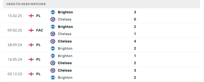 Những màn đụng độ giữa Chelsea và Brighton thường diễn ra hấp dẫn với nhiều bàn thắng, ở cả 5 lần gặp nhau gần nhất của hai đội và 4/5 lần đón tiếp Brighton trên sân nhà Chelsea khép lại từ 3 bàn trở lên.