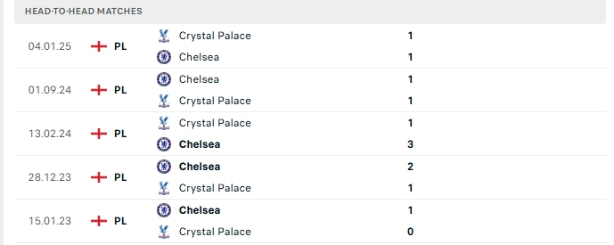 Lịch sử đối đầu của Chelsea vs Crystal Palace