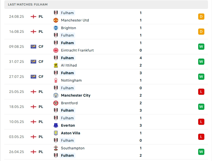 Fulham ở 2 lượt trận đầu tiên đội bóng này có được 2 bàn thắng cùng hàng thủ nhận 2 bàn thua, lối chơi của Fullham thiên vệ sự chặt chẻ nơi hàng thủ và chờ đợi thời cơ phản công, 3 trận gần nhất của Fulham khép lại không quá 2 bàn và 3/5 trận xa nhà của họ cũng tương tự.