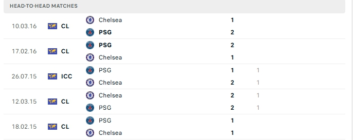 2 lần gặp nhau gần nhất của Chelsea và PSG khép lại đều chạm mốc 3 bàn thắng, với sức mạnh ấn tượng đến từ hàng công cả hai thì trận đấu tới hứa hẹn sẻ hấp dẫn, dù tính chất của trận chung kết thì sự thận trọng vẫn được ưu tiên.