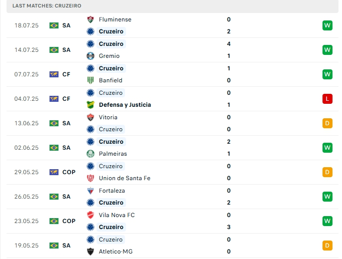 • Phong độ Cruzeiro