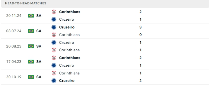 Phong độ gần đây Corinthians vs Cruzeiro