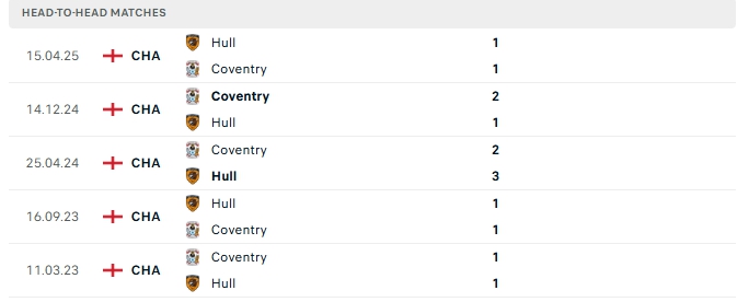 Những màn đụng độ giữa Coventry và Hull City thường diễn ra chặt chẻ không có nhiều bàn thắng được tạo ra, 3/5 trận gần nhất gặp nhau của hai đội và 3/5 trận đón tiếp Hull City trên sân của Coventry khép lại không quá 2 bàn.