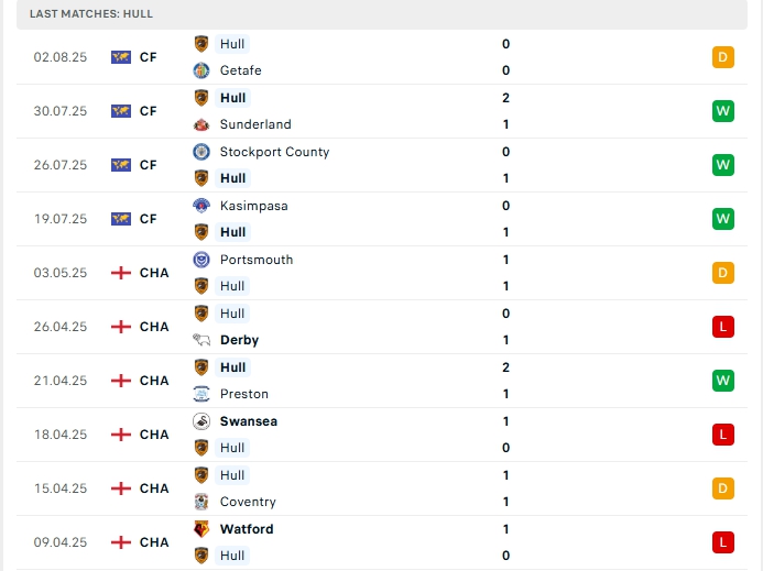 Hull City khép lại mùa giải vừa qua với vị trí thứ 21 trên BXH, một thành tích đáng quên của những chú hổ, họ đang đặt nhiều quyết tâm cho mùa giải năm nay, để chuẩn bị cho mùa giải mới Hull City có cho mình 4 trận giao hữu với thành tích ấn tượng, hàng công có được 4 bàn thắng cùng hàng thủ nhận 1 bàn thua, 3/5 trận đấu đó Hull City khép lại không quá 2 bàn và cả 5 trận xa nhà khép lại cũng không quá 2 lần lưới rung.