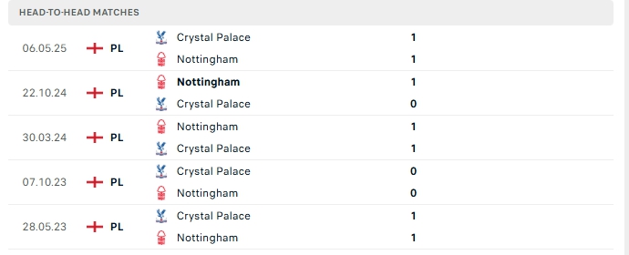 cả 5 lần gặp nhau gần nhất của hai đội và 4/5 lần đón tiếp Nottingham Forest trên sân của Crystal Palace khép lại không quá 2 bàn, một trận đấu được dự báo giằng co và đầy toan tính chiến thuật.