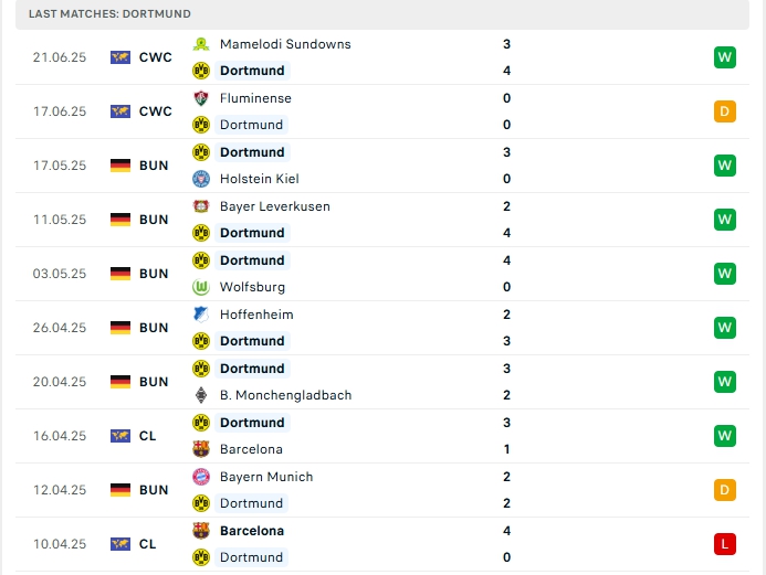 Phong độ gần đây Dortmund vs Ulsan Hyundai