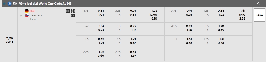 Bảng tỷ lệ kèo bóng đá trận đấu Đức vs Slovakia