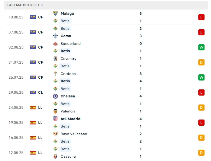 Bên kia sân, Betis có cho mình 5 trận giao hữu với thành tích thắng 2, hòa 1 và thua 2, 2 thất bại liên tiếp trước Como và Malaga ở 2 trận gần nhất sẻ khiến sự chuẩn bị cho mùa giải mới của họ bị đặt nhiều dấu hỏi lớn, khi thi đấu xa nhà Betis có được 2 chiến thắng, 1 hòa và 1 thất bại ở 4 trận giao hữu vừa qua.