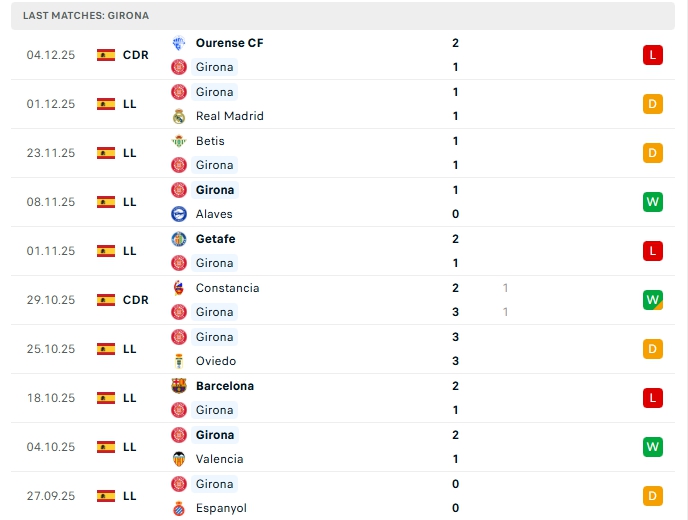 Girona ở 14 vòng đấu đầu tiên, hàng công mang về 13 bàn thắng cùng hàng thủ nhận 26 bàn thua, 3/5 trận gần nhất ở đấu trường Laliga của Girona khép lại không quá 2 bàn thắng, Girona đang gặp khó ở hàng thủ họ cần sớm khắc phục.