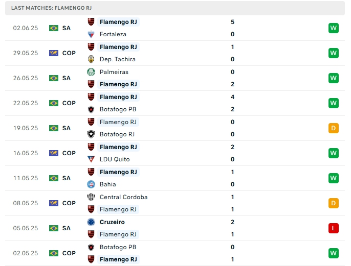 Flamengo là đại diện đến từ Brazil, đội bóng này thường chơi rất phóng khoáng và tấn công đa dạng, điều này giúp những trận đấu có sự góp mặt của họ có nhiều bàn thắng được tạo ra, hàng công của Flamengo mang về đến 12 bàn thắng ở 4 trận gần nhất.