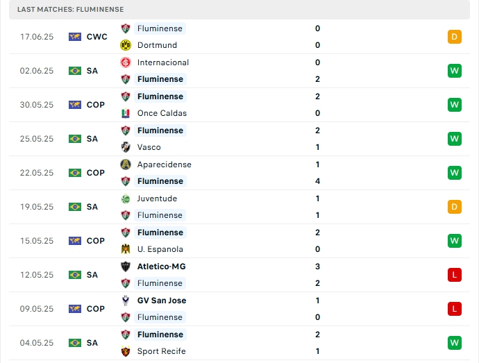 Fluminense là đại diện đến từ Brazil, có thể thấy lối chơi của đội bóng này thiên về phòng ngự, phản công, ở 4 trận gần nhất của họ, hàng công mang về 6 bàn thắng, cùng hàng thủ chỉ nhận 1 bàn thua.3/4 trận đấu đó khép lại 90 phút không quá 2 bàn.