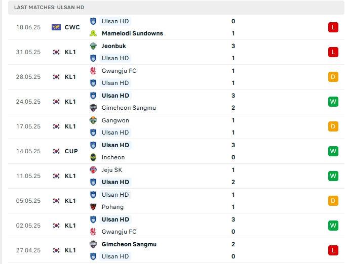 - Phong độ Ulsan Hyundai