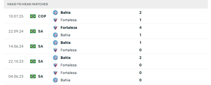 Những màn đụng độ giữa Fortaleza và Bahia thường diễn ra với sự chặt chẻ và ít bàn thắng được tạo ra, 3/5 trận mà hai đội chạm mặt nhau của hai đội khép lại 90 phút không quá 2 bàn.