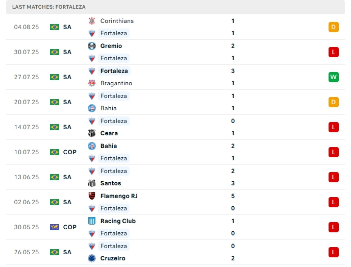 Phong độ gần đây Fortaleza vs Velez Sarsfield