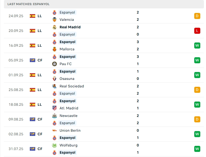 Bên kia sân, Espanyol sau 6 lượt trận đội bóng này mang về 3 chiến thắng, 2 hòa và 1 thất bại, có được 11 điểm và đang xếp thứ 4 trên BXH, một thành tích đầy ấn tượng, phong độ thời gian qua của Espanyol là khá tốt, họ thắng 3, hòa 1 và chỉ thua 1 sau 5 trận, khi thi đấu xa nhà Espanyol cũng chơi tốt khi thắng 2, hòa 2 và chỉ thua 1 ở 5 trận đã qua.