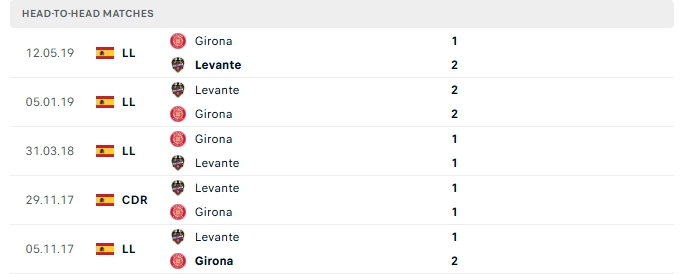 Những màn đụng độ giữa Girona và Levante thường diễn ra hấp dẫn với nhiều bàn thắng được tạo ra, cụ thể ở 3/5 lần gặp nhau gần nhất của hai đội và 3/5 lần đón tiếp Levante trên sân của Girona khép lại trên 3 bàn, việc hàng thủ cả hai đang chơi tệ là cơ hội để trận đấu xuất hiện nhiều bàn thắng.