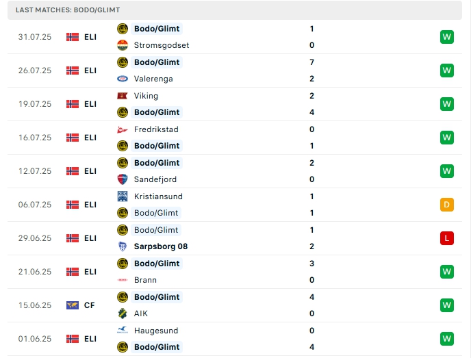 Bodo Glimt sau 16 vòng đấu hàng công của đội bóng này mang về 40 bàn thắng cùng hàng thủ nhận 15 bàn thua, lối đá của đội bóng này thiên về tấn công nên những trận đấu có sự góp mặt của Bodo Glimt đều hứa hẹn nhiều bàn thắng, dù vậy thời gian qua Bodo Glimt thường nhập cuộc không quá tưng bừng. 3/5 trận gần nhất khép lại không quá 2 bàn và 2/3 trận xa nhà gần nhất cũng tương tự.