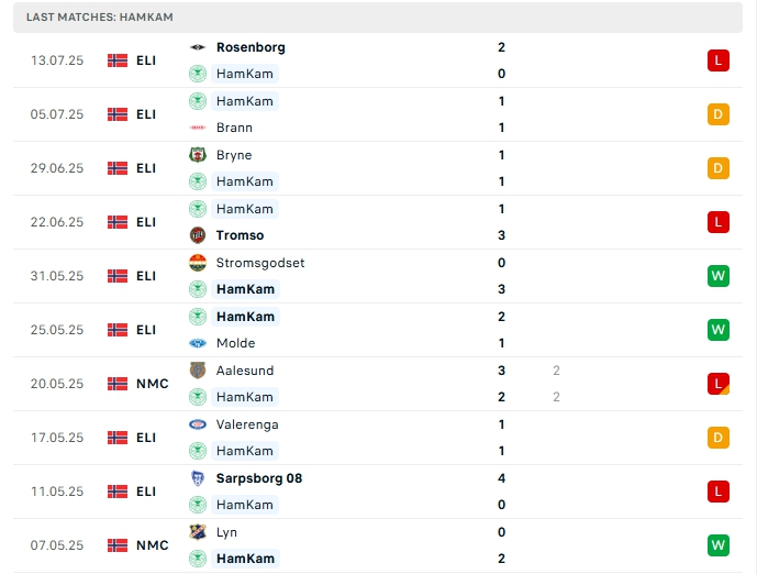HamKam ở vòng đấu gần nhất họ nhận thất bại trước Rosenborg, đây là trận thứ 4 liên tiếp không biết đến mùi chiến thắng, sau 13 trận đấu cùng với 3 chiến thắng, 4 hòa và 6 thất bại có được 13 điểm và đang xếp vị trí thứ 14 trên BXH, trên sân nhà của mình HamKam cũng đang chơi tệ khi chỉ thắng 1 ở 5 trận gần đây.
