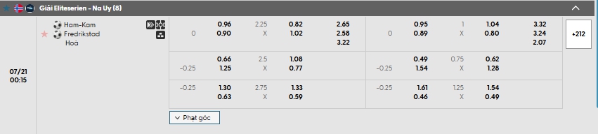 Bảng tỷ lệ kèo bóng đá trận đấu HamKam vs Fredrikstad