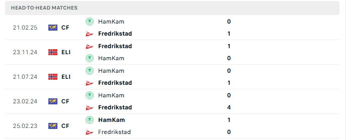 Những màn đụng độ giữa HamKam và Fredrikstad thường diễn ra với sự chặt chẻ với ít bàn thắng được tạo ra, cụ thể ở 4/5 lần gặp nhau gần nhất và 4/5 lần đón tiếp Fredrikstad trên sân nhà của Hamkam khép lại với kết quả tương tự.