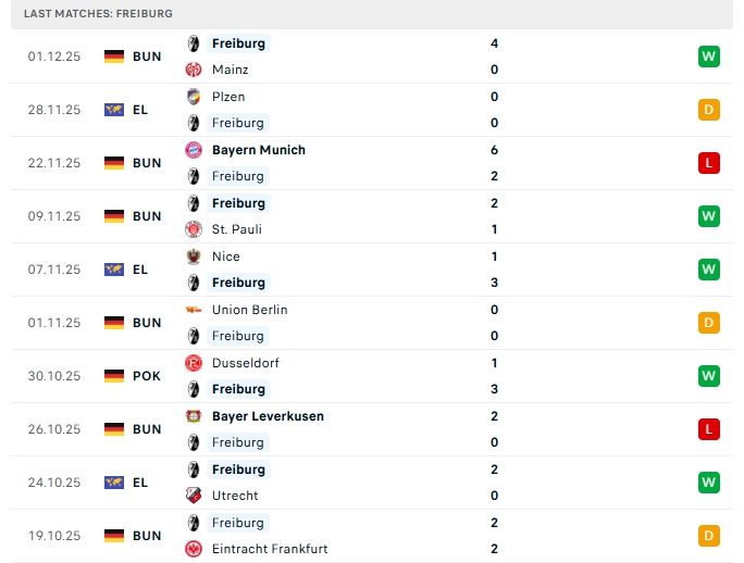 Freiburg sau 12 vòng đấu họ mang về 19 bàn thắng cùng hàng thủ nhận 20 bàn thua, 4/5 trận vừa qua của Freiburg khép lại trên 3 bàn thắng, khi thi đấu xa nhà ở 3/5 trận vừa qua cũng vượt mốc 3 bàn.