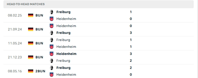 Lịch sử đối đầu của Heidenheim vs Freiburg
