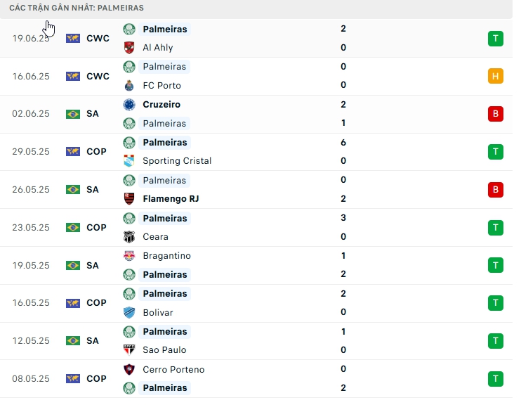 Bên kia sân, Palmeiras sau trận đấu đầu tiên hoà 0-0 trước Porto, thì ở lượt trận thứ 2 Pameiras đã có được cho mình chiến thắng 2-0 trước Al Ahly, qua đó leo lên đứng đầu ở bảng đấu của mình, họ bằng điểm với Inter Miami nhưng có chỉ số phụ tốt hơn, chỉ cần 1 kết quả hoà ở lượt đấu cuối thì họ sẽ có được vị trí đầu của bảng xếp hạng. Chính vì vậy nên Palmeiras sẽ thi đấu không quá nhanh ở lượt đấu tới đây.